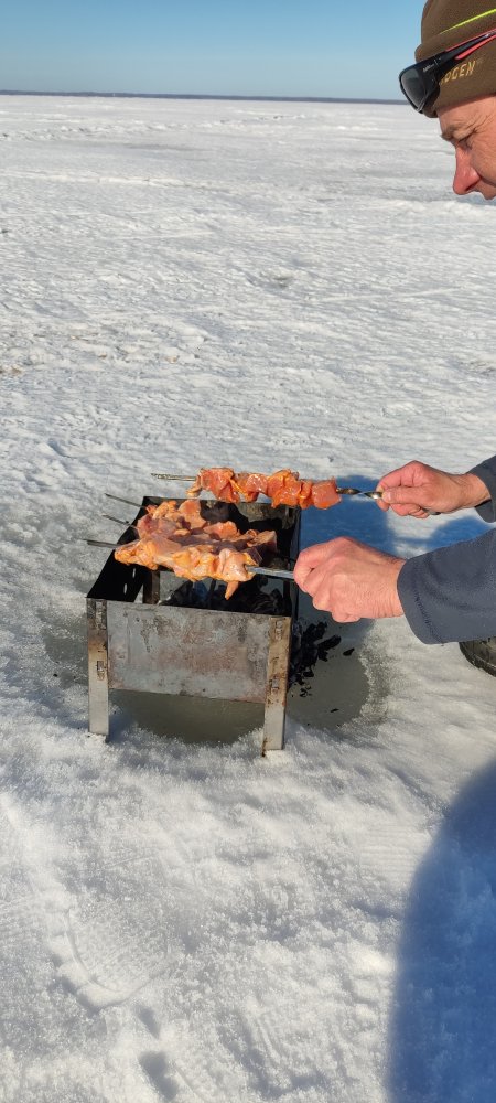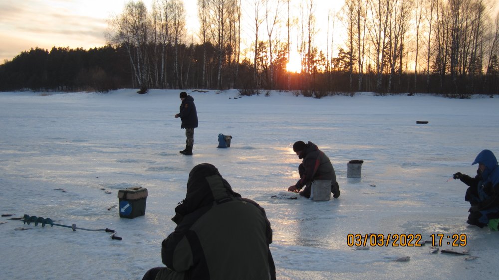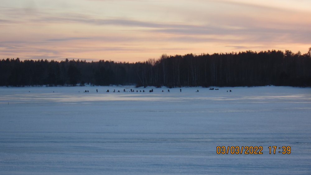 Всем привет! Были сегодня на ловле волжского синца с Максом Яр(отдельное ему спасибо за доставку и мотылей) Были спозаранку на льду,но что-то не очень хорошо утром, этот"синтепон клейстерный" на нас реагирует! Народу много,шума ещё больше, да и рыба-мельче... В принципе-все свои,встретил много старых знакомых,в том числе и из других городов,вот это приятно,все живы-здоровы, и особо "по-головам" никто и не ходил...но бегали все туда-сюда очень азартно,Макс как-то сразу втянулся в этот людской круговорот(но и он иногда отставал), а я как-то не очень люблю это дело, и передвигался за этой "ходячей грядкой",через раз на третий... иногда срабатывала особая засадная тактика...не ты бежишь за рыбой,а её к тебе гонят...(шутка) Макс Яр-в красном... до обеда-результат по рыбе не очень радовал...зато после обеда-расклевалось неплохо...лёд затрещал,и годами выработанный истинкт- включился, это или сбавили нагрузку(что-плохо),или-добавили(что-хорошо),это было ВТОРОЕ на наше счастье, и как-то мне сразу фартануло,пока я перевязывал мормышку на более тяжёлую,тут и оказался почти в середине клюющей стаи,Макс был впереди и тоже неплохо ловил,я видел... кайфанули по-полной с часик...этого клёва хватило с лихвой для полного рыбацкого счастья, да и рыбка была уже достойного размера! всё,хватит... и завтра зовут,не поеду(но это,не точно) ...народу больше достанется... да и завтра там будет битва,к гадалке не ходи! Сегодня-то было 5-ть десятков рыбачков,не меньше... Привет всем фишингистам от Макса рыба уже весенняя...клюёт до полной темноты...правда выходит покушать почти ночная рыба-густера...но-мелкая,я не ловил, потому что лески было на удочке всего 3 метра...это чтобы другое не клевало,мы же,строго на синца! но наш народ суров, он сидит до-последнего... А закат красивейший... Всем Удачи и не болеть ,скоро же на активную РЫБАЛКУУУ!!!