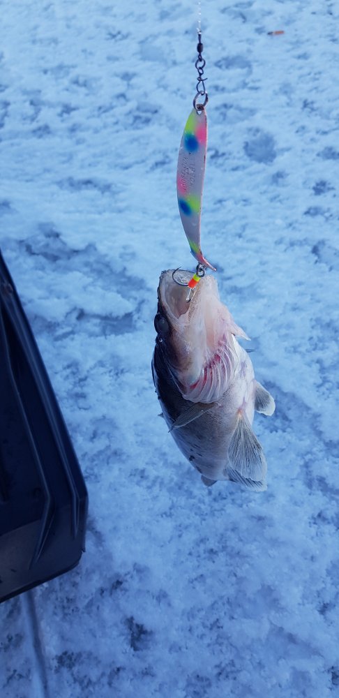 Сегодня, Брейтово. Приехал в 11-30, показали мне мою подвеску, там тихий ужас, вердикт: ехать нельзя, но это умным, дуракам можно, но не быстро. Поставили пружину, все остальное стянули изолентой и в 14 часов поехал я к синцу. Приехал, все морды знакомые в основном, но я ничего не пропустил, с утра так синца и не нашли, я вовремя приехал, что то начали полавливать, но кисло. Сел в сторонке и с первой лунки поймал берша, потом просрал хорошую поклёвку и был притрог один, всё на Мосилок от Вильямс. Потом смотрю доктор, который Хирург что то присел, а тот что Нарколог начал клиентов на коньяк ловить, поехал к трезвому врачу, около Сани поймал два синца, смотрю и Нарколог подрулил, поймал густеру и мне ее подкинул. Короче толком ничего не ловили, снегоход привёз меня и туда и обратно, хотя море тяжёлое, а ещё теперь у меня пружины целые, как по стиральной доске ехал. А цикл жизни берша замкнулся.