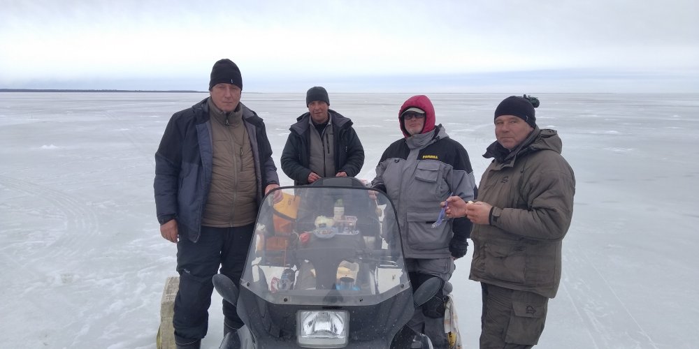 Жена захотела щуки на Хе и котлеты:D Едем с ней в Борок. Договорился накануне с буранщиком, чтобы вывез в 5 утра, чтобы по темну ещё выставить свои 15 жерлиц. Хорошо, что днем в пятницу заскочил на Реммаш и купил живца, ночью его уже не было, нигде по дороге не было. Зачем сдал пароли и явки по живцу, с кидку в магазине все равно не дали:( За Федорцово не знаю, но они с 5 утра, а в 5 нам надо быть в Борке, а машину времени ещё не изобрели:) Живца, чтобы не забыть, оставил в коридоре. Ошибка. Перед выездом выкинул пяток, да и другие не очень. Поменял воду, позвонил на Реммаш, но докупить не получится, нет уже. Форека рисует по утрам дождь, но вдруг ошибется:) Не ошиблась:( Приехали как и полагается, чуть раньше. Дождь льет. Звоню буранщику и договариваюсь, что перенесем на 7 утра, из-за дождя. Ложимся в машине дремануть. Хорошо так поспали до 7 утра. Подъем, переобувка, выгрузка и к Стекляшке. Там встретился с Виктором (Волга СП), поздоровались. С нами поехали ещё двое в санках, их высаживаем по пути и мчим дальше, на место, где когда-то ловили с Рафом и Толиком на жерлицы. Приехали, никого. Спокойно расставили жерлицы и я пошел в море, искать окуня. Вроде раньше он тут ловился. До ухода жена поймала небольшую щучку, потом в районе кило-полтора. Я пошел в направлении немногочисленных людей. Иду, сверлюсь, смотрю камерой. Пусто. Искать окуня камерой, да ещё в море, идея хреновая, но уж как есть. Так бурясь и досаживая первый АКБ чуток не дошел до народа. Вижу Аэролодку, ещё подумал, не Димба ли? Слышу, Ломов, привет, это Димба:hi:Подошел, поздоровались. Димба приехал на своем пепелаце с Женей и штук 8 уже словил и не окуней, а плотвы8-) Ну что же, будем искать. Поначалу не очень, а потом находил и находил новые лунки с плотвой и корзинка начала набираться. Да и плотва хороша. Нет, были и по 50гр, но были и такие, которые заставляли выводить её на пальчиках, а она по весеннему и бодро нарезала круги под лункой и ты ей: «Ну по тише, не нервничай, иди сюда»:D Часам к трем, когда рыба расклевалась получше, позвонил жене, сказал приходи. Она пришла и тоже поучаствовала в небольшой раздаче. А как светилось её лицо, когда она вывела самую большую плотвицу нашей рыбалки:OОбернулась ко мне, и сияя - видел? Конечно видел:) Плотвы мало, вся разбита на мелкие стайки и носится, как всегда в последние годы и мы за ней, то теряя, то находя вновь её стайки. Народу не много, свои рядом, ещё и Вадим Вакцина подъехал. С ним два раза по две стопочки опрокинули за встречу и хорошее весеннее настроение:drinks: