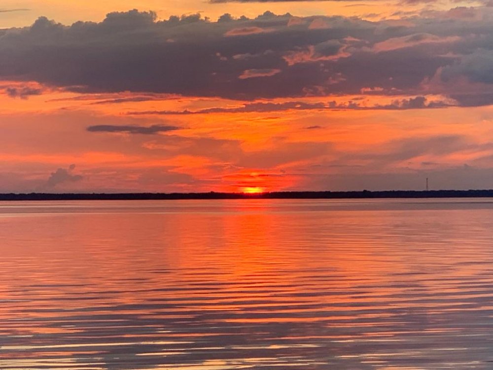 Проснулся, погода пока супер, кое где на горизонте тучи, но сейчас штиль и сухо, хоть и влажно, что кстати неплохо, росса приличная на стекле лодки, может и не будет дождя...