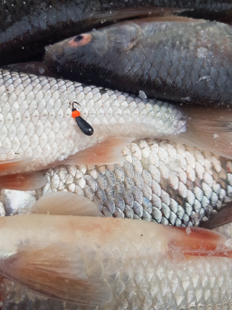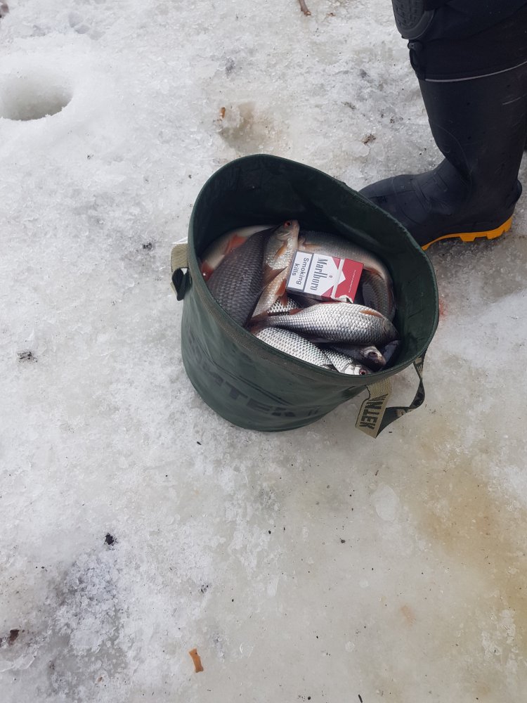 Сегодня Заповедный Край. Поехал на Ламь, там же в том же коллективе, плюс @Нарколог, ловили тоже самое, но я на другие приманки. Поймали столько же, несколько рыб было покрупнее вчерашних. Клёв сегодня был не ровный, был один явный пик где то на час, вот тогда результат и сделали. Нарколог так ловко ловит на червя, просто загляденье и не думайте, что это так просто, я правда тоже поймал пару штук и забросил это дело, терпежу нет ничего не делать, а Лёша на две удочки, как музыкант - ударник херачит эту рыбу, энергоёмкая ловля конечно. Я ловить то бросил, а удочку оставил и в какой то момент, во время милой беседы, Женька, как прыгнет по Яшински, хвать мою удочку и ... вытащил плотву, во профи, заметил же каким то боковым зрением, что она в лунку поползла, тогда окончательно я её и смотал... В три часа закончили ловлю, хотя клевала хорошо, но ребятам домой ехать, да и ветер достал сегодня, в море наверное вообще пипец как дуло.