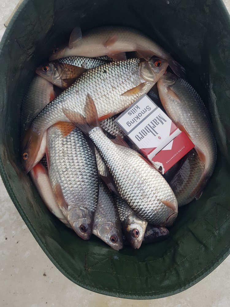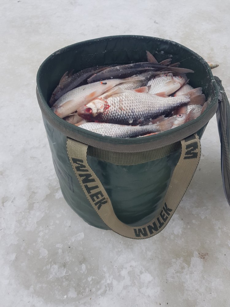 Отлично половили . С Илюхой на двоих 116 штук , в сумку влезает 15-16 кил , сумка битком . На речке в этом сезоне не были. Так что в первый раз . Аккуратно , дорога до и после Дюдиково скользкая , меня разок крутануло хорошо . От Дубца 70 км , а ехали 1,5 часа . Народу не много , мест для стоянки полно . Сначала с Димычем по подбережке покрутились . Рыба есть , клева нет . Червь , мотыль , не хочет . Но сразу нашли глубину метра 2 и на этом повороте и отловили весь день . Подьехала подушка с Чеснавы с Дроздовым . А потом Коптевский чуть мимо нас не проехал . Я с опарышем весь день , на голую гораздо хуже . Поклевки отличные. Я променял трех окуней на всю Илюхину плотву и ловили в одну кассу . Ловилось лучше хуже у всех . Хорошая в общем то погода , после обеда только чуть подуло . Отличная компания , что еще надо ! Завтра продолжим .
