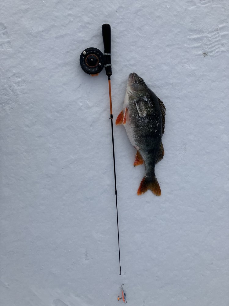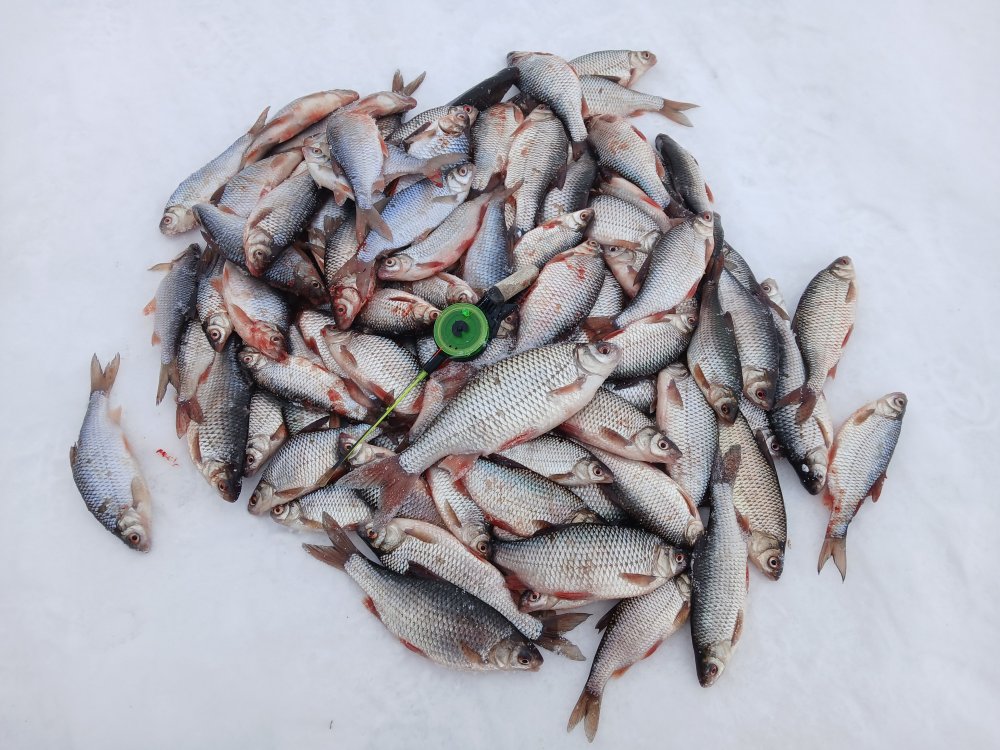 Я человек хороший, многим нравлюсь, то чем я занимаюсь этой зимой, в ВМФ называется "демонстрация Флага". Говорят, это очень важно... Сегодня Заповедный Край. Поехал на Ламь, видимо в оттепель прошла нужным мне маршрутом аэролодка, она продавливает снег и получается "автобан" 2.5 метра шириной, ветер сгоняет в это углубление снег, ехать кайф, ровно, мягко, безопасно. Как дал сотку, приехал за 15 минут. Там встретил много друзей, с ними и ловил. Клевала плотва весь день, подходами, по 5-10 штук. Размер покрупнее чем раньше, мелкая есть, но не много, окушок проскакивает, в основном плотва 150-200 грамм, редко крупнее... На безмотылку клюёт, реализация так себе, на опарыша, мотыля и червя поклёвки увереннее, реализация близка к ста процентам. Я опарыша сажал, но когда съедали, продолжал ловить без него, пока поклёвки не прекращались, потом опять подсаживал. Плотва такая же не яркая, но побойчее стала, пару рыбок то с наскока и не вытащил, потолкался на 0.117-ю леску. Погода супер, как ни странно мало коллег, как мы не пытались привлечь к себе внимание, ЖК даже песни пел, но человек пять пришли нам помогать, не больше... Женька ловил больше меня, но ему и нужно больше, кидали в одну 20-ти литровую сумку, килограмм 15 накидали, в 16-00 я уехал футбол смотреть, ребята остались, чего от рыбы то уезжать...