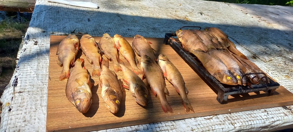 Окуня не только коптим, ещё чистим по-фински и жарим. Когда хочется.