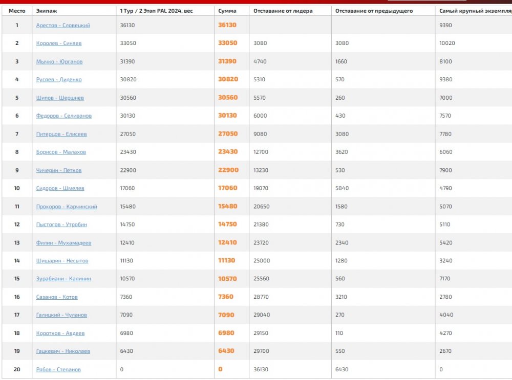 арестов/соловецкий на высоте..аналитика на уровне, вот люди поработали..щуку и судака скирдуют :)...думаю это точно чемпионы этапа