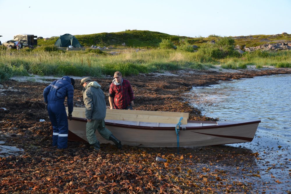 Стоянка у моря открытая на полуострове,есть зимовье-рыбацкая тоня,живет тот кто первым занял,мы не предентовали ,есть палатки ,есть прицеп.разбили лагерь и спустили лодку,первый раз она увидела воду,внук тоже и его охватил восторг.