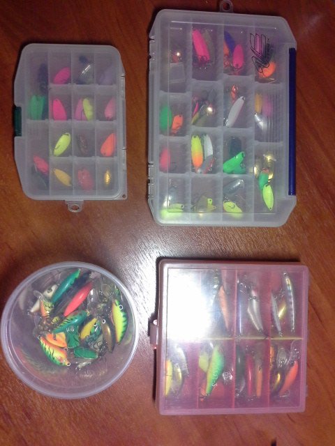 Маленькое уточнение по продажам коробок с приманками... Коробка1: 30 форелевых блёсен. 4000руб Коробка2: 30 форелевых блесен в коробке Versus 4000руб. Коробка3: 33 форелево-голавлиных воблера Daiwa, Rebel, Cotton Cordel, Megabass, ZipBaits, Anglers Republik и др. 9500руб. Для купившего все три коробки разом спеццена - 16000руб. Пароль при звонке: - Я с фишинга!