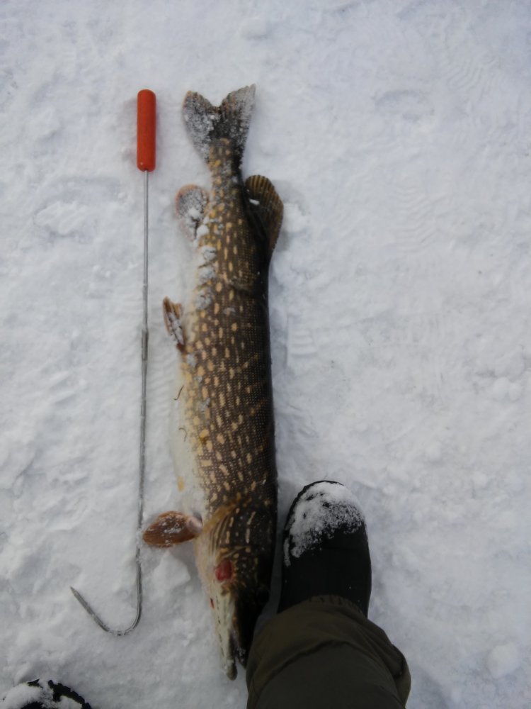 Ну что ....Рыбу с утра разделал.... Можно и отчитаться... Поехал 23 не рано.....Не хотел чтоб меня оббуривали ....Думаю приду и встану на пустое место......Ага .... Хорошо нашел место куда запарковаться ....Дальше больше нарооооду нереально....Все в жерлах....Вроде увидал пустой пятак пришел а там трое лещатников поляну разбурили....Ну делать нечего спросил разрешения и выставился....Потом прогулка к берегу осмотр кромки и установка подбережных ....Выставил десяток .... Потихоньку стало флажить ...Вот судачок вот бершик а вот и щучка им компанию составила ....Стало вечереть на закате из 10 жерл под берегом срабатывает сразу 6.... Прикольно смотреть на такую демонстрацию....Взял тока трех да и те докилошки .... Ночь прошла без флагов ....Проспал в машине....С утра заработала подбережка ....Попался и судак ....Под берегом поклевок окунь на мормышку....Где то в 12 позвонил Лось ...У меня как раз очередной флаг ...Поболтали ...Не мотает ...Ну думаю мима....Стал выбирать ...Чую есть ....Ну очень энергичная рыбка ....Подарила мне 5 минут удовольствия)))) На этом все стихло и почти сразу пошел мокрый снег....Понял больше ничего не будет и стал собираться.... Спасибо Иваньке за отличную рыбалку!!!! Зы Очень рад за Лапшина он в компании братьев лосей и Борисыча ловил подткалязиным и взял щуку на 4800....))))) Да и остальные наколбасили))))