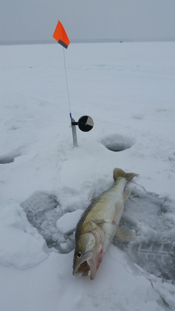 Вчера были с Борисычем и Лапшиным на иваньке ... выставились широко и стали ждать рассвет .... сразу как стало видно у Димона флаг ...так и пошло у Димона рыба за рыбой мы с Борисычем слабее ... но без рыбы в итоге никьто не остался я на пару сковородок наловил , далее Борисыч и чемпион Димоныч ... клевал берш и пищевой судачек ...некрупная но вкусная рыбка .... Как пошел снег клев отключили ....в полвторого свернулись и по сугробам марш бросок до машины ... отличный выезд , лед 10-15 см ... Спасибо Борисычу за доставку , а Лапшин мерзавец , обловил жестка ....