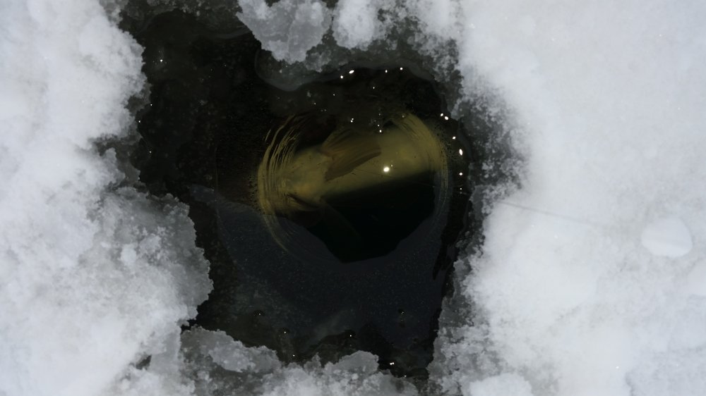 Всем привет Выхи, ДВ Ехали с опаской - всё-таки слуд был нешуточный в прошлый раз. По инфе - техника с баз не возит, треколы буксуют и т д На деле так и вышло. На водоёме тишина и покой, я такого лет семь последних не помню - лед есть а народу нет Вот что значит нет ибучего базовского извоза...на машинах не проехать, а пешком люди ходить разучились. Два дня наслаждался тишиной и отличной зимней погодой Местами воду конечно прихватило за прошедшую неделю, есть совсем сухие участки. Но есть и конкретные засады - корка 5см сверху, потом вода 20см и потом уже лед. Кстати, довольно тонкий, местами по ощущениям не больше 15см промокшего монолита...так что весеннее солнышко по-быстрому с ним расправится. В общем - уезжать не хотелось...собрал жерлицы и сижу - туплю, смотрю в даль А рыба...не за ней ездим, в конце-концов...