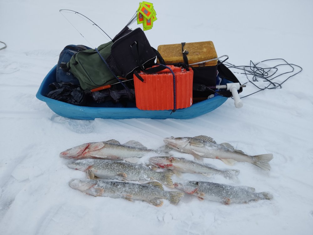 21. Ну что ....хворь прицепившаяся на прошлой неделе вроде отступила и я сразу рванул на рыбалку .... естественно без фанатизма на полдня поехал пожерличить на озерну )))).... Зима прям настоящая все засыпано снегом ...а вот лёд пока так себе ....двух слойный пирожок сверху 4 снизу 7 .....вроде терпимо ....но как то не надёжно))))).... С утра тишина а вот между 9 и 10 Сразу 5 флагов :crazy:.....в итоге до 14 поймал 5 щук ....одну отпустил .....самая на 3.7 ....рыбалкой очень доволен....и флаги посмотрел и щук наловил )))))