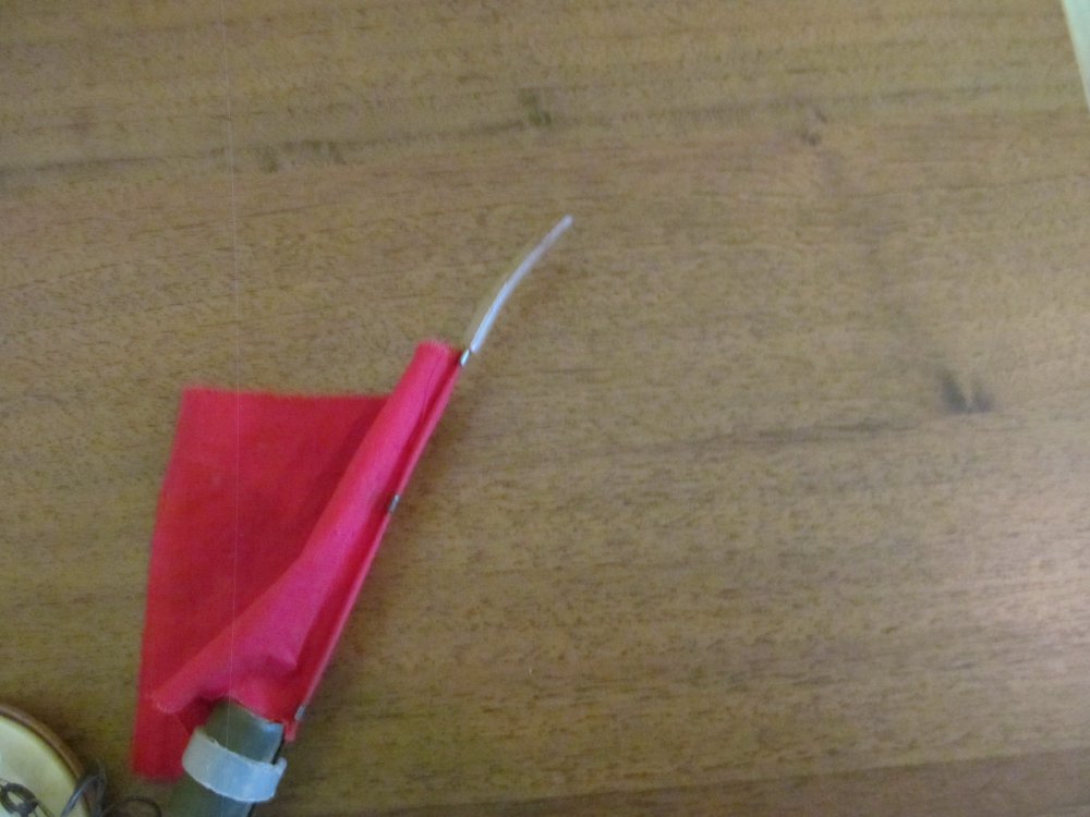 To Анатольич: А я чаво, я ж для обсуждения,типо,чтоб ветка жила Доброго времени суток, уважаемые коллеги! Читаю «кружки и жерлицы», и решил выложить на суд честной компании своё усовершенствование жерлицы, которое позволяет увидеть подход хищника к живцу, увидеть самое начало поклевки… Ведь что самое волнительное в рыбалке – это наверное подготовка к ней и поклевка – летом удар в руку, переворот кружка, зимой – «загар флажка» , крики «Г о р и и и и т». А самое главное – не количество и качество, а просто отдых. ИМХО. А по порядку: А расставил я жерлицы, сижу, полавливаю живца, посматриваю на жерлицы. Вот к одной из них подошел хищник – судак, щука, окунь - на кого настроились. Я метрах в …дцати, но вижу. Степенно, не торопясь подхожу к жерлице, жду, смотрю - хищник прицеливается, может и принюхивается. И вот «взлетает» флаг, (или нет - всё успокаивается). Ну и далее – кто как привык – размотка-остановка-размотка-подсечка, или по другому. Хотя знаю старого рыбака, который поступает нестандартно – флаг «горит», катушка не крутиться, хищник взял и стоит под лункой. Так вот этот чел. подходит к жерлице и начинает топать ногами по льду, и о чудо – катушка начинает бешено вращаться – хищник с живцом во рту «бежит», подсечка навстречу ну и далее -вываживание. Я пробовал, иногда получается, но без статистики. Отвлекся. Всё моё усовершенствование – это кусок трубочки от медицинской капельницы, одетой на кончик пружины с флажком и в эту трубочку заправлена сложенная вдвое леска 2 - 4 см. На фото все видно. Пружина с флажком не заводится за катушку, а почти свободно болтается согнувшись под тяжестью грузика – вес подбирал экспериментально, примерно 15-20 гр. – зависит от толщины и длины пружины. Ветер (если есть и не ураганный) дополнительно колышит пружину, не дает затихариться живцу. Предвосхищение поклевки – очень часто – пружина с флагом начинает гулять вверх почти вертикально и даже вертикально – живец пытаясь убежать от появившегося хищника, бросается вверх, вниз – флаг опускается почти до льда. Такие танцы наблюдал по несколько минут. Срывает флаг только резкий хват хищника, ну еще конечно крупный живец в этом случае не «катит», срывает, может сорвать и очень сильный ветер. Бороться с этим можно просовывая сложенную вдвое леску (0,4 – 0,45) дальше по трубочке или складывать ее вчетверо. Про постановку жерлицы на голом льду: в стойке, отступив от нижнего края примерно 5-6 см, сверлите отверстие D=6 мм, в отверстие вставляется карандаш, сучок и т.п., пешней дырку во льду – хоть насквозь (даже лучше), карандаш, сучок не даст провалиться стойке. Анатольевич как-то писал про сверло – можно, пробовал. Но полтора десятка карандашей сломанных пополам (забыл – сломаешь сучок, ветку) – легче и быстрей. Флаг с трубочкой можно попробовать и для тарелок. Удачи… Одел каску и передернул затвор… С размером фоток не справляюсь