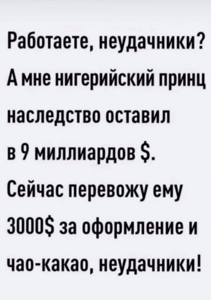 Даже не нужно гонять деньги из Нигерии. Внимание. Это регулярные поставки снега из России. Оплата на месте за счет 9 млрд. Ежемесячный гарантированный доход 100 млн. будет переводится вам в биткоинах.