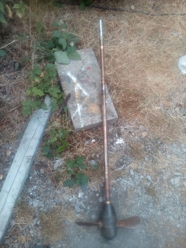 Шестерню размолотило примерно через 20 моточасов после того когда я поставил на гребной вал специальную (самодельную) фрезу для резки водорослей, лески, шнуров и пр. предметов. Фреза из двух половинок, весит почти 300 гр, на фото видно куда я ее прикрутил. Двигатель у меня особый, с ВРШ (винтом регулируемого шага). Гребной вал (на схеме длиная красная полоса) бронзовый диаметром 25 мм, внутри него двигается другой вал из нержавейки d=22 мм, он входит в зацепление с деталью 3 (на схеме в красном кружке , у нее внутри зубья. Мне ее тоже после поломки по заказу сделали). Причем разрушенная шестерня по размеру не совпадает с этой деталью 3, шестерня меньше. Но когда нужно чтобы гребной винт получил тягу, то через рычаг они входят друг с другом в зацепление.