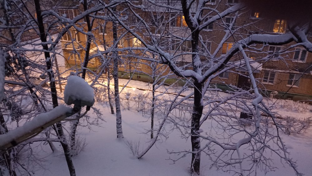 Снег в разных районах имеет разную величину сугробов просто на газоне 14-16 см, с северной стороны гаража на машине см 30-40 намел, а так идёт и идёт… Как через 3-5 дней +21° обещают