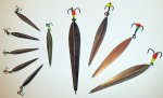 Т.к. Буйнов, сказал что такоВа цвета у рыб нет, правда и самому раскраска не нравилась... ...краску ободрал и сделал другой хвост(крайний слева) Заодно и еще парочку сделал, в разных весах и размерах... Крайний с права в прошлый раз разловил, мелким судачком, а на средний завтра надеру.(наверное).