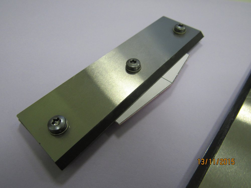 Технология изготовления блесны Ромб. Часть 2. Следующий ответственный этап - гибка коронок. Я использую для этого нехитрую оснастку и шаблоны углов. Альтернативный способ - гнуть коронку лезвием ножа, зажав ее в тисках между двумя металлическими линейками. После гибки снимаем самоклейку, коронки готовы: Продолжение следует....