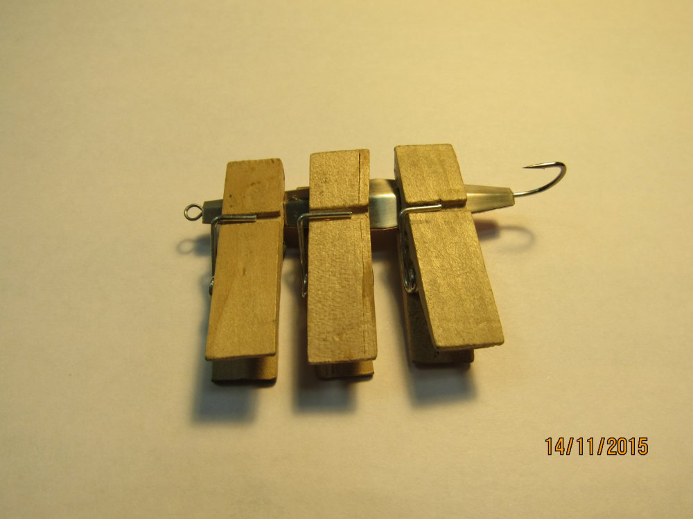 Технология изготовления блесны Ромб. Часть 5 - заключительная. Собираем блесну. Соединяем все части воедино с помощью обычных прищепок, пропаиваем грани (без фанатизма), впаиваем крюк и петельку. Все лишнее убираем с помощью напильника и наждачки, наводим красоту: Взвешиваем для очистки совести: Вяжем ниточку: и прячим в кошелечек..... Ну вот как бы и все. Спасибо за внимание.