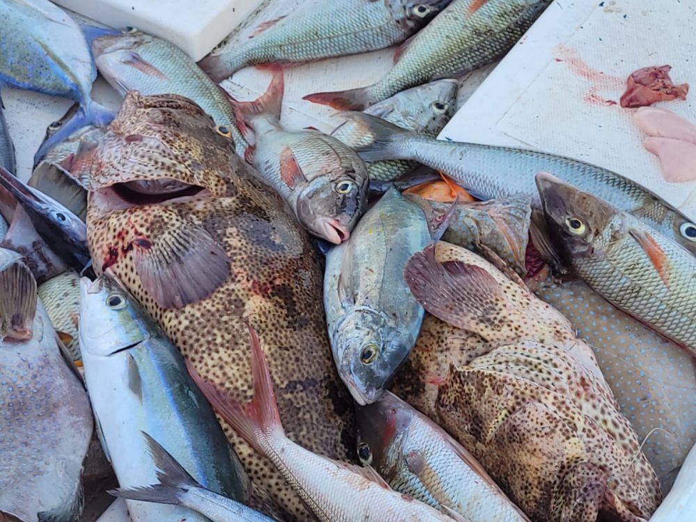 Ваху сначала, на фото, а потом 2 акулы по 25-30 кг, одна за грудной плавник. Леску не обрежешь, кованые крючки из нержи и поводки считаные...поэтому качал по 20 минут, думал коня рожу