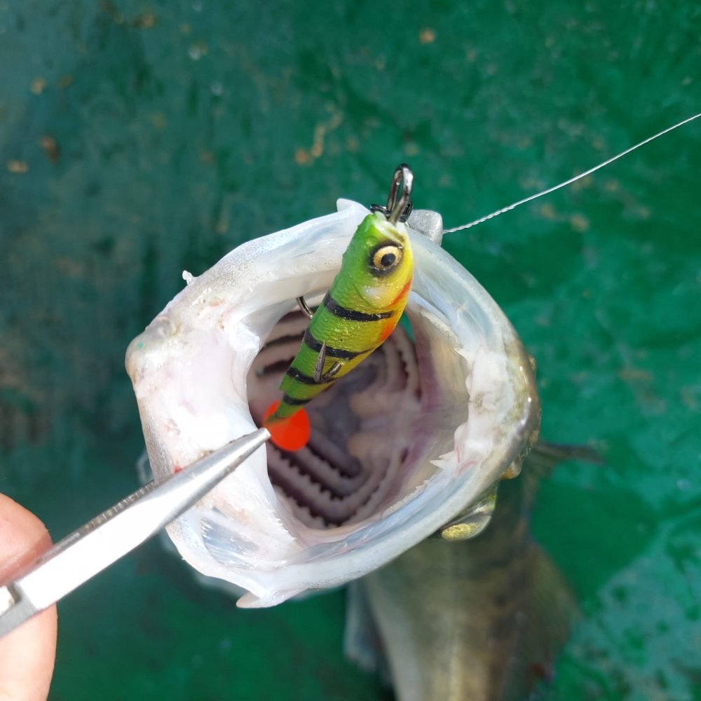 Надо что-то менять. Принимаю решение: "утяжеляюсь" с 8 до 12 грамм и уменьшаю размер приманки с трёх до двух дюймов.И это сработало!!! Дополнительная масса груза и меньший объём приманки позволил "пробивать" неприятный, боковой ветер и добрасывать до активного окуня.
