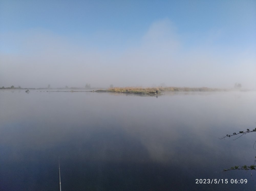 Наведались. Около 5 часов на месте . Напарники остались ловить на старом месте, я с "herabuna" ушел на новые места. На первом месте мелко, на втором и третьем сидеть не удобно. Лишь четвертое место устроило. А вот с глубиной долго не мог определиться, мешал густой туман.
