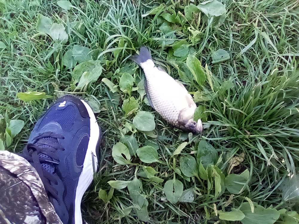 Всем привет! Ездил сегодня на "хитрый" пруд. Карась так и не клюет. Просидев без поклевок, с 5 до половины восьмого, уехал на деревенский пруд. Был там три дня назад, но все было затянуто ряской. Сегодня ряску немного растащило и поклёвки карася не заставили себя долго ждать. Карась в основном ладонь и чуть больше, но для такого пруда нормальный размер. Поклёвки на любой вкус. Несколько раз были дуплеты. Попадались и золотые карасики, которых сразу отпускал. Израсходовав все тесто и отдав серебряных карасиков деревенскому товарищу, уехал домой. Вобщем сегодня душу отвёл на херабуну 4,5 метра. Тесто было "Ароматные отруби" "Король войны. Рыбный" и "Зеленый великан" замесил с клеем "Медуза". Как мне показалось, на "Медузу" карась попадался покрупнее. Ну а всем не хворать и НХНЧ!!!
