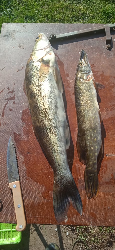 Опять вчера, опять вечора. Началось с головля, крупный но не сильно пострадвший а потому нах не нужный как костлявый и безвкусный за борт. Вторая поклёвка щука, хоть и утомил но при взятии за шкирман взбрыкнула и воблер у меня в руке а щука в воде. Повезло что тройники впились в руку только до бородок. Третья поклёвка щучка но в размере допуска да ещё и заглот по гланды. Четвертая поклёвка судачок ровно двушник. И заключительная поклёвка, торпеда за трешник катала меня минут десять, брать такую за шкирман при торчащих из пасти тройниках воблера стрем, а потому пытался утомить чем и воспользовалась рыбина открутилась. Сачком не пользуюсь ибо возьмеш сачок не увидишь рыбу Все поклёвки после захода солнца до темноты.
