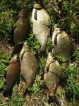 Сегодня я прогуляла школу, а Костя смену на заводе:D И поехали пощупать линя, пока это возможно. Условия ловли и так очень сложные, а через несколько дней, когда поднимется водная растительность, задача станет практически невыполнимой. Я лично поймала линя только один раз много лет назад, случайно, и видела ещё трижды поимки у других рыбаков. Так что мне, конечно, очень хотелось. Хочется - перехочется:p У меня не вышло. А, вот с подлещиками и плотвой всё было хорошо! С плотвой даже более, чем хорошо, но когда товарищ рядом таскает линей, как-то плотве особо радоваться не получается:_)): Сначала, запутала болонское удилище, потом оборвала оснастку на махе, а для полного счастья опрокинула банку с пивоЙ:huh: Константин же кидал в свою точку, разловленную ещё в понедельник (а я всё сбоку пыталась как-нибудь пристроиться, но там это весьма непросто) и два хороших в садке, а очередной монстр! сошёл, обматав леску вокруг коряги. Загорели и отдохнули. Надеюсь в ближайшее время шанс мне ещё выпадет. Буду стараться!:good: