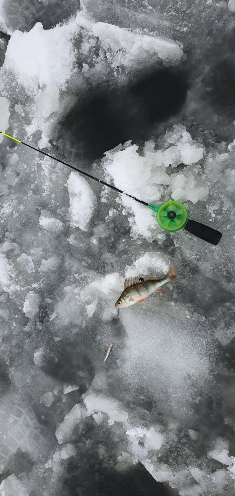 Сегодня посетил торфяники, от трассы 8 км., дорога до них проезжая только для полного привода, машин достаточно, народу человек 60, в том числе ижерличники, но мы ловили на блесны-балансиры! Окунь клевал разнокалиберный, от 50 и до 250 у меня, когда перешёл на баланс, на втором махе щука зацепилась и сошла в лунке, срез , перевязался и продолжил. Лёд 8-10 см., на нем местами замерзшая каша из снега и воды. Погода почти безветренная и минус 4 днём. Вот такое открытие сезона вышло, в принципе доволен !
