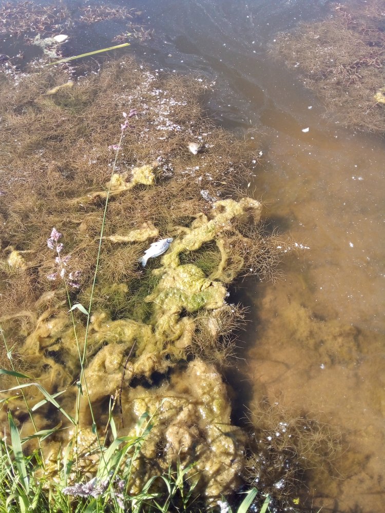 На обратном пути вдруг заметил много дохлого карася плавающего в траве,странно с утра не видел8-).Опять задумался (это второй то раз за день ,который ещё только начался,как бы это не вошло в систему:):tease:).Потрава?Но тогда бы замер весь пруд и он не активничал.Решил,что после недавнего,бурного нереста особо ослабевшие особи не вынесли всех тягот и лишений жизни и сдохли от рыбьего ковида,так как малька среди них не было...(озабоченно ,надо бы Собянина предупредить,на подходе новый штамм:crazy:).