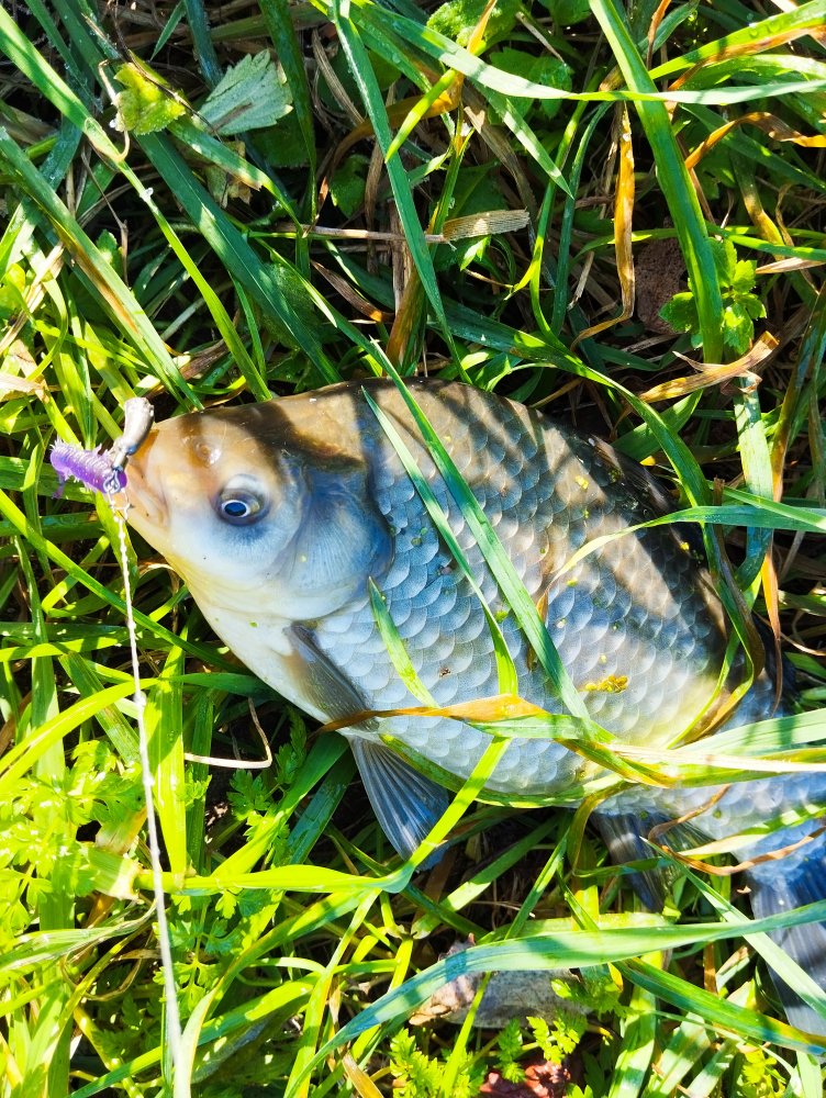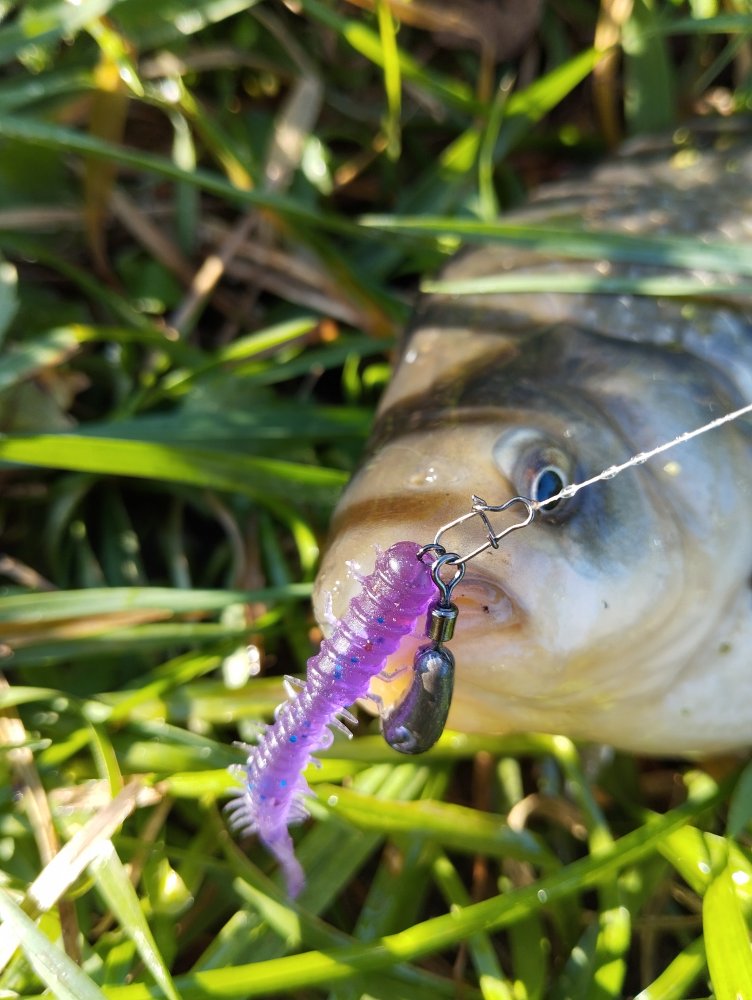 и решил погонять окунцов. Но первым на джиг риг 2гр. отозвался карась.)