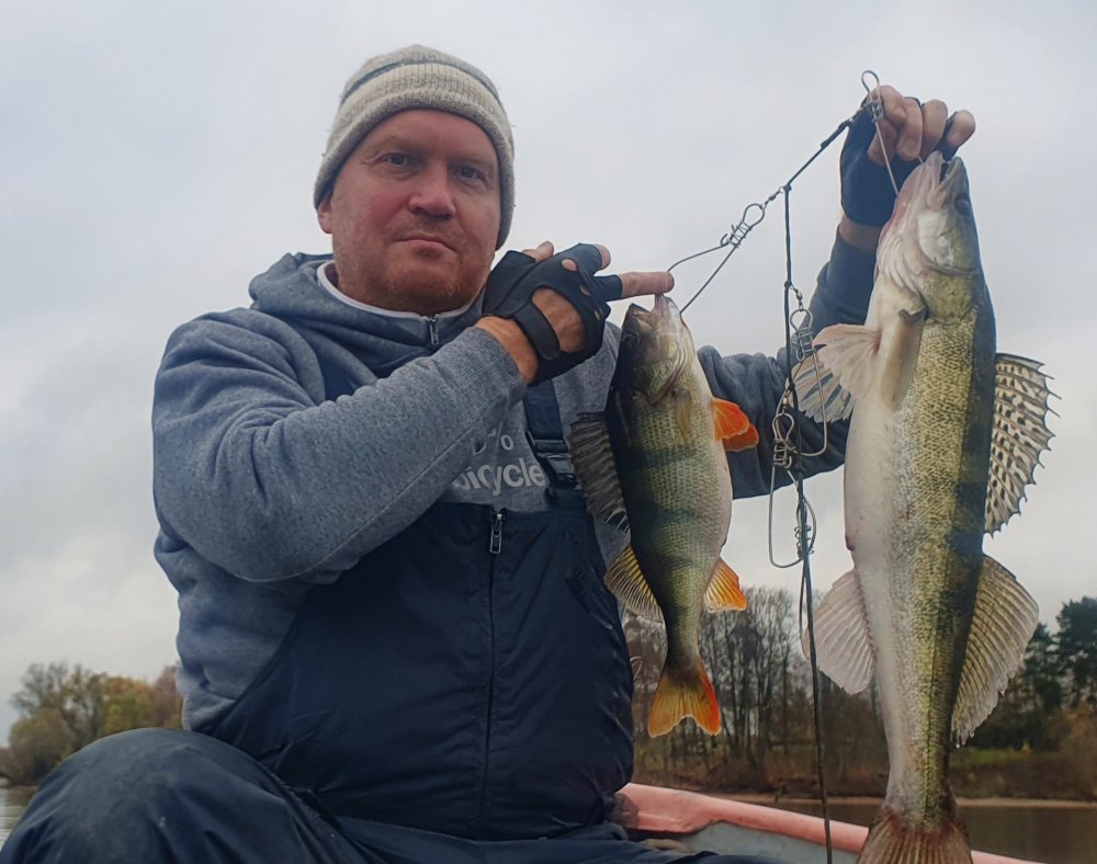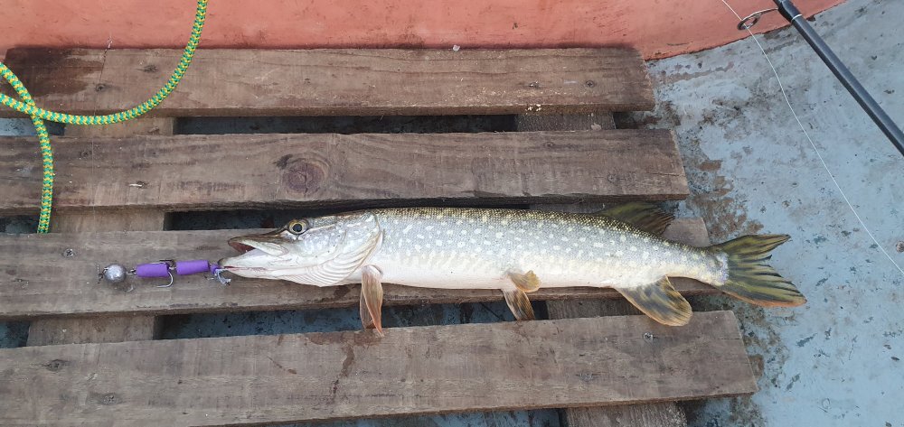 О, сори! Приманка 2,5кг. судака "не попала в кадр", затерялась как-то. Исправляю оплошность. Хотя и мою "мандулень" в кадре не видно , но она фиолетово-черная, аки в песне поётся.