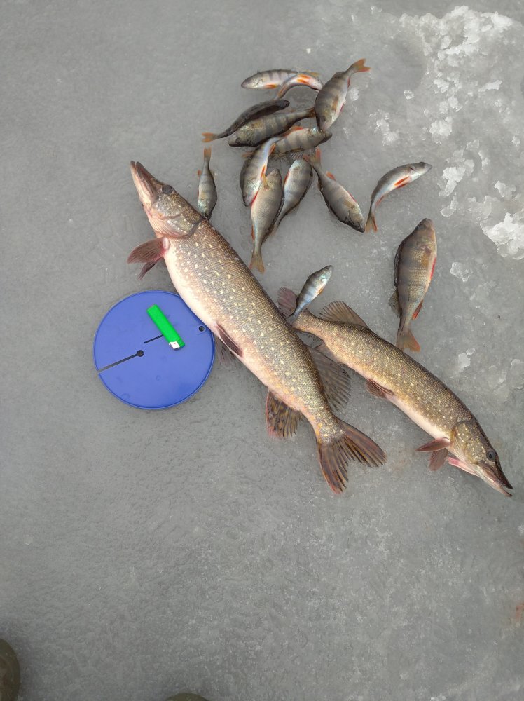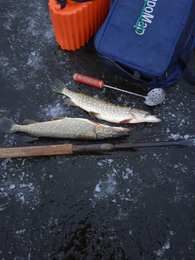 Всем привет! Сегодня открылся по жерлицам! Итог: 7 флагов 2 щучки! Состояние льда отличное! Уехал 13:30 , Илья Иванович остался ждать вечернего выхода. Как то так!
