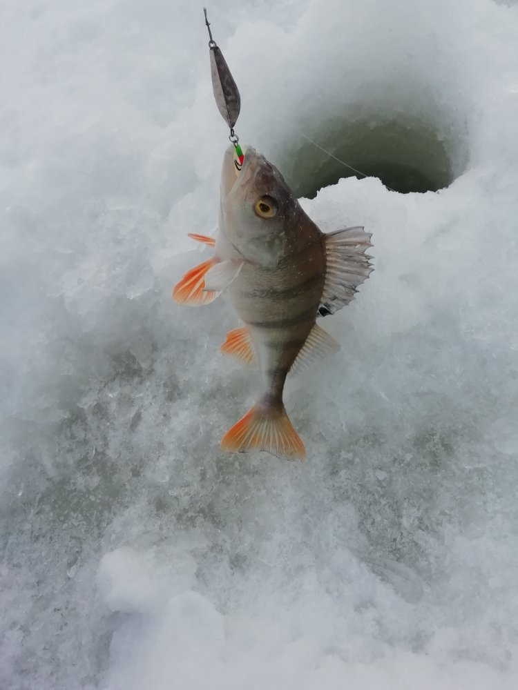 Ловили с друзьями только на блесны , некрупный окушок отзывался не часто, приходилось буриться часто, как правило клевал одиночки и сразу почти, товарищ поймал одного грамм на 300 :), день пролетел незаметно ;) !