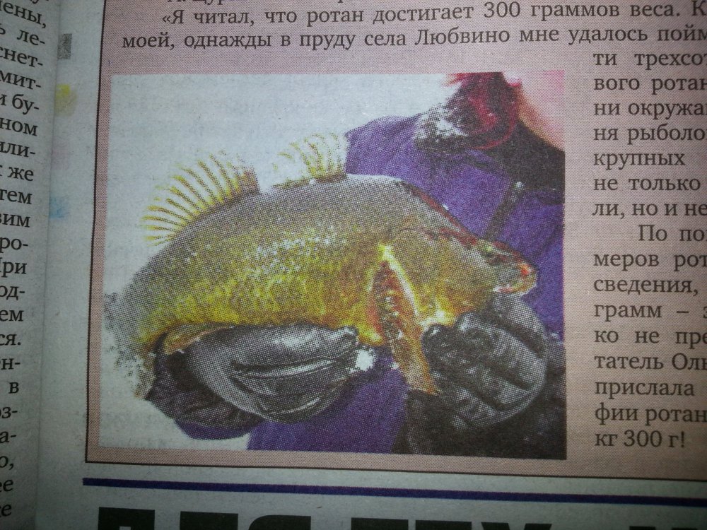 Попросил Костю, Злую Собаку фото скинуть, но пока с газеты переснял, ротан 1300 грамм!