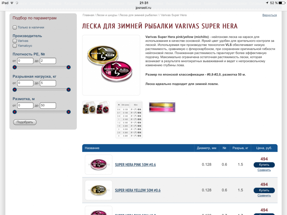 Как то Димба попросил купить 0.87 тоже Варивас, но другая модель, пришел в Экстрим, там две одинаковые катушки - одна 470 рублей за 25 метров, вторая 1130 за те же метры, начал спрашивать, а там спортсмен был - поплавочник, говорит та что дороже "воду вообще не пьёт", я говорит с ее помощью выиграл чемпионат Италии, ловил голавля на одноу личинку мотыля и крючок номер 24, смысл в том, что мотыль мог двигаться сам и таскать поводок из такой лески!