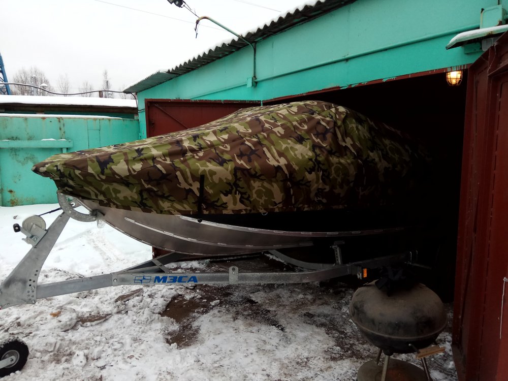 Увидел, как он работает. Сразу в гараже с помощью зажимов и булавок все разметил на ткани прямо на лодке, все выпуклости будут с усилением. Часа два колупался. Ленту со стяжкой за транцем пропустит по борту, крепление к раме советует сделать с помощью лент. Говорит все будет прилегать плотно и натянуто, чтобы вода скатывалась как барабан. Уже в среду планирует привезти и надеть на лодку готовый тент. Посмотрю, что получится. Тогда и оплата.