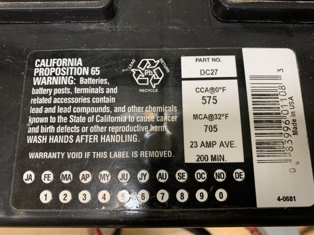 1. Аккумулятор DC27 105 Ач, новый — для замеров принимаем его, как эталонный. Куплен в прокатись.ру. Заряжался/разряжался до замеров три раза.