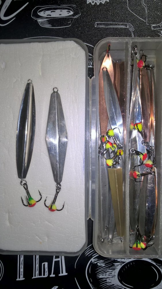 @BigRIB, @Куп.А., Все равно ,,шпалой,, то, что делают у нас...типа что показал Николаич...назвать нельзя Я этим летом с многими рыбаками в Ленобласти общался...продаванами и владельцами рыбол. магазинов в Выборге.. ,,Шпала,, появилась в Ленобласти когда-то...под озера, Ф.залив, Ладогу, Онегу. И она была и остается действительно шпалой - трапецией...двуцветной, одноцветной...толщиной максимально 3-4 мм...шириной не более 10 мм...длина 5-8 см. Впаек обычно не делали, подвеска....и часто с одинаркой. Иногда цепочку, как у финнов вешали... с одинаркой. Но всегда практически...идет подсадка - глаз А Ту, что Николаич показал...буду обзывать - Трехгранка Кудиенко
