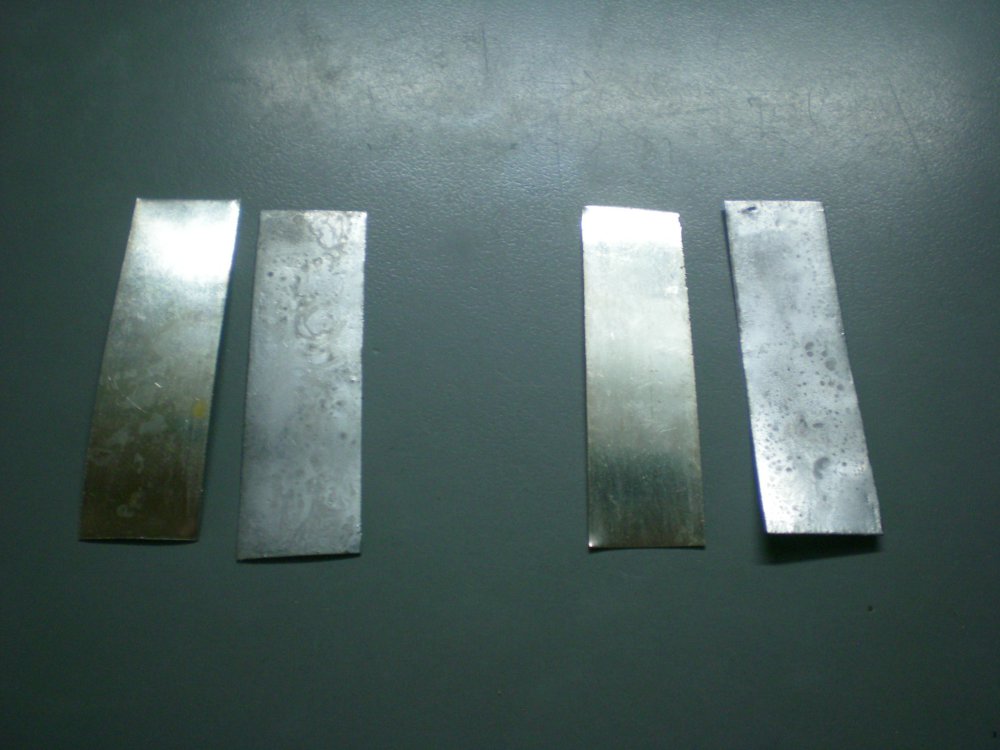 @Куп.А., , все хорошо, но исследование не доведено до конца . Теперь, берем две отожженые и залуженные заготовки и греем их паяльником какое-то время, имитируем типа заливку коронки припоем. Вот в этот момент, и лезет всякая бяка, т.е. залуженная вроде нормально заготовка начинает терять свое лужение и начинают проступать черные пятна. Попробуй.... Ну а потом, заготовки отходят в твою пользу, как испытателя, и могут быть использованы по прямому назначению .