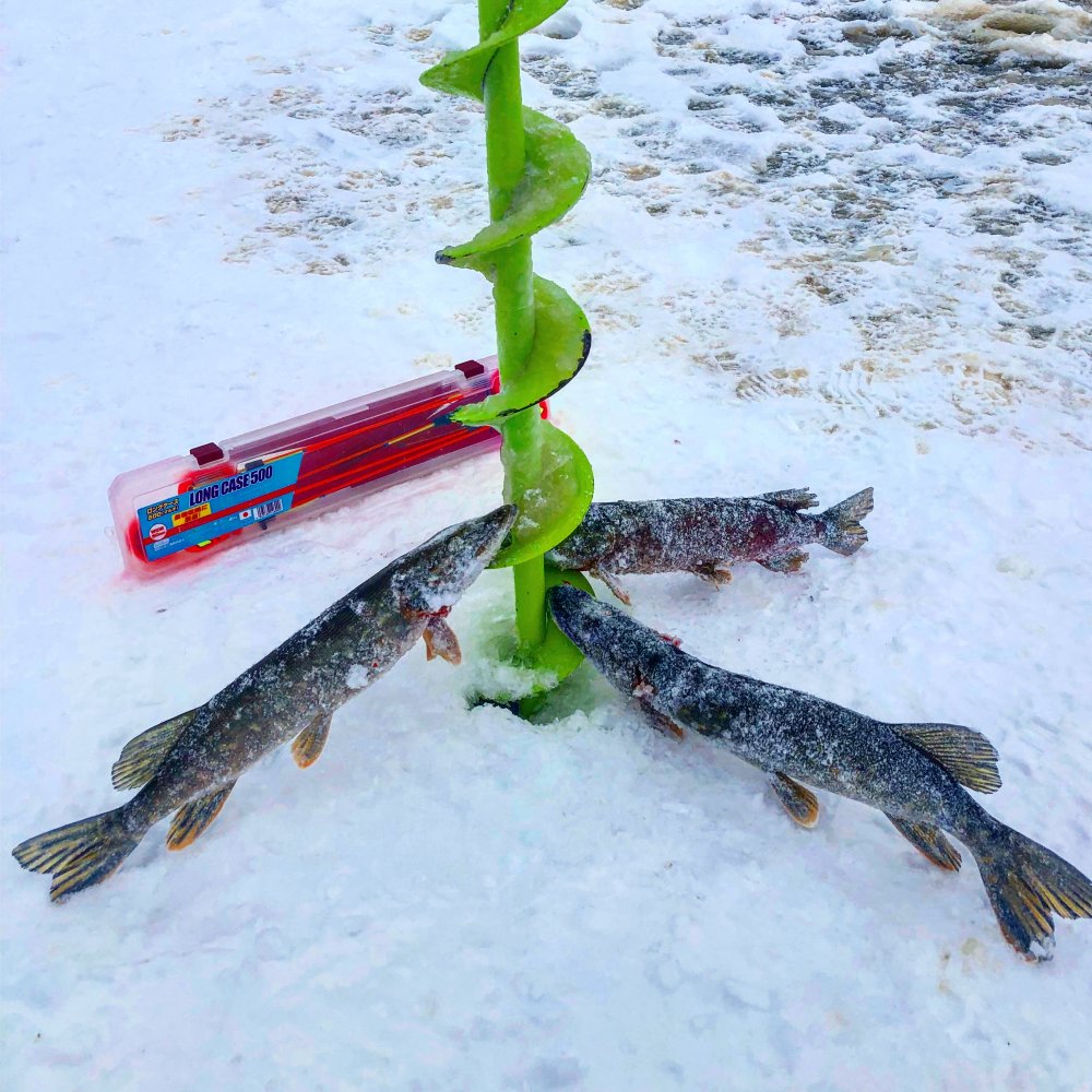 Покатались сегодня по ММ и Иваньковке. Лёд везде достойный, кроме проездов под мостами ( ж/д, новый через Шошу, под платником и под Ленинградкой. Пришлось даже в одну сторону Ленинградку пересекать... В итоге решили половить жерлицами. Выставились на глубине 3,5 -4 метра. В течении дня было флагов 10. Двух достойных слил у лунки (одна флюо перегрызла, другая тупо ушла в лунке. К вечеру в активе 4 докилошных и десяток окуней на блесну. Погода порадовала...