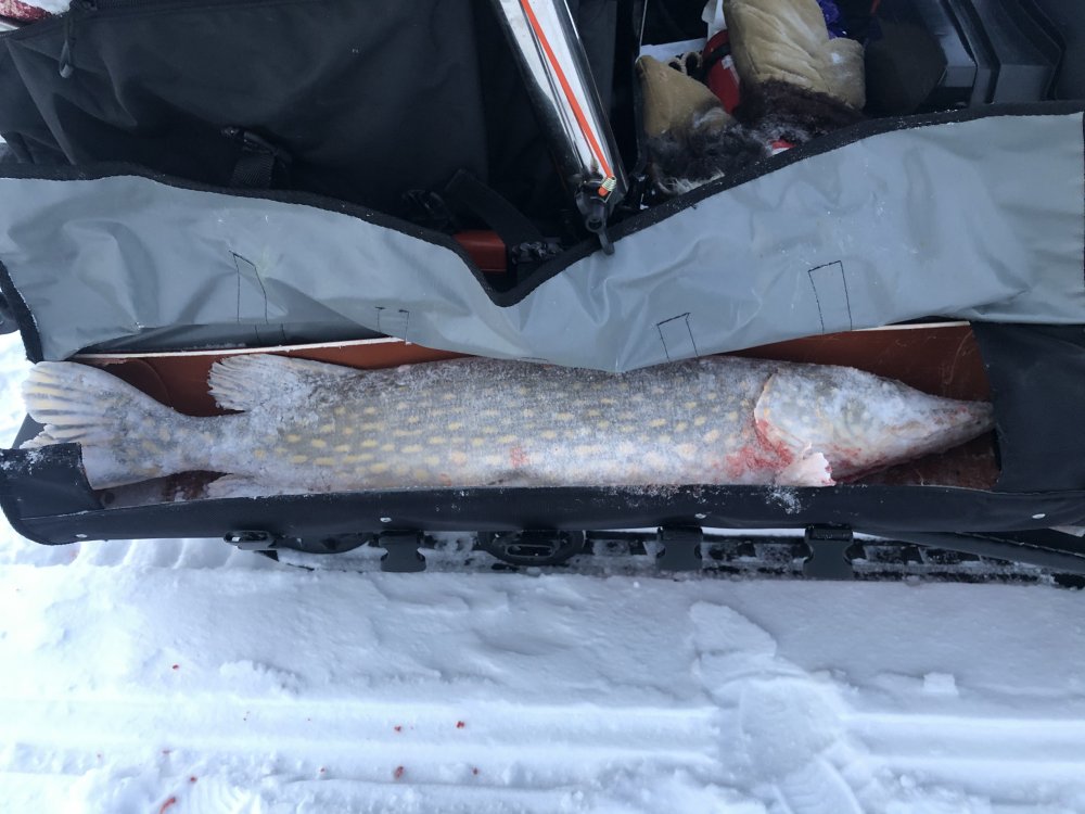 Холодно было в эти выходные. Когда выставлял жерлицы вспомнил подвиг генерала Карбышева. Лунки засыпал при помощи лопаты, тем самым сберёг их от замерзания аж двое суток, при ночной температуре около -20 градусов. В итоге 4 флага - 4 щуки. Самая толстая 5100. Пытался половить судако-берша, но холодно и безрезультативно. Леща палаточники ловили не плохо.