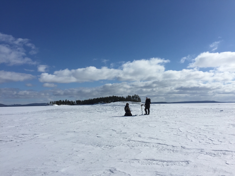 А главное, уцепили этот балдежный карельский "последний лед", солнечный праздник на нормальном еще льду. По дорогам - везде машины рыбаков у сьездов к бесчисленным ламбинам. С прицепами и без.