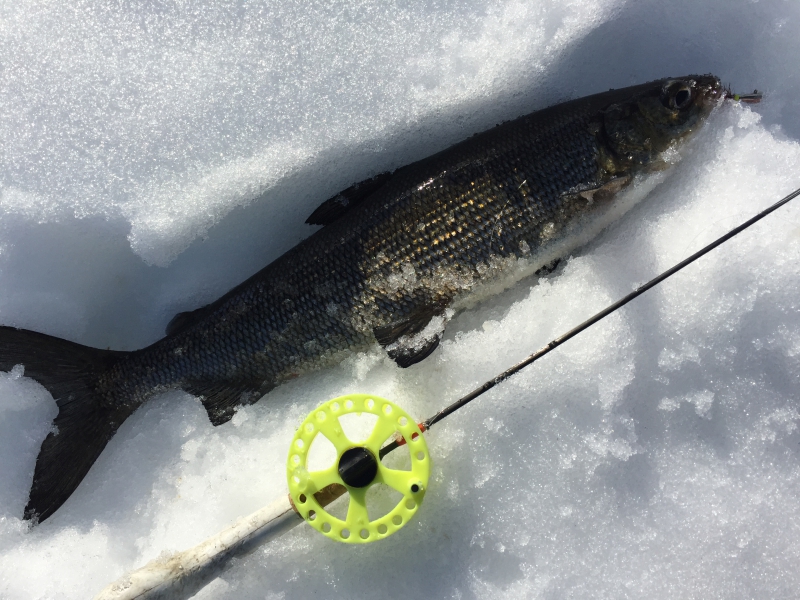 И вчерашние, кстати подкормленые лунки, встретили ажиотажным клевом красивой вытянутой плотвы с вкраплениями нехилого окуня! Полосатый до полукило.