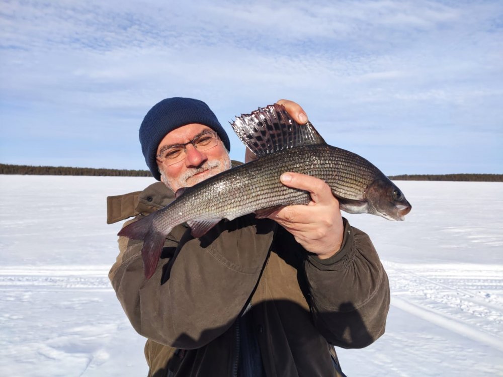 Блесёнкой ощупывал каменистое прибрежье. Глуховато. Огромный валун. Решил обследовать. На второй лунке - уперлось...Думал, цепанул. Но оно забилось на метровой! Щука? Здоровенный хариус, почти чёрный, с алым парусом!