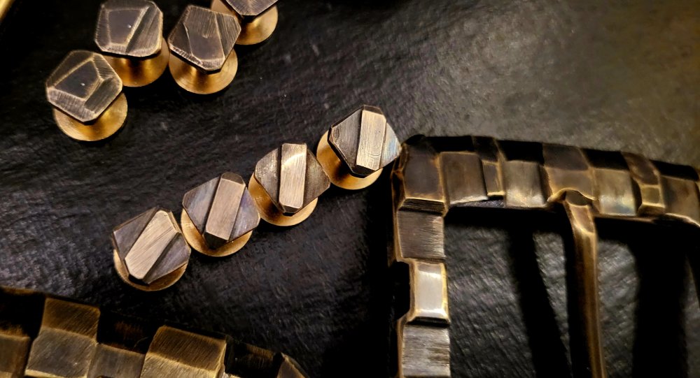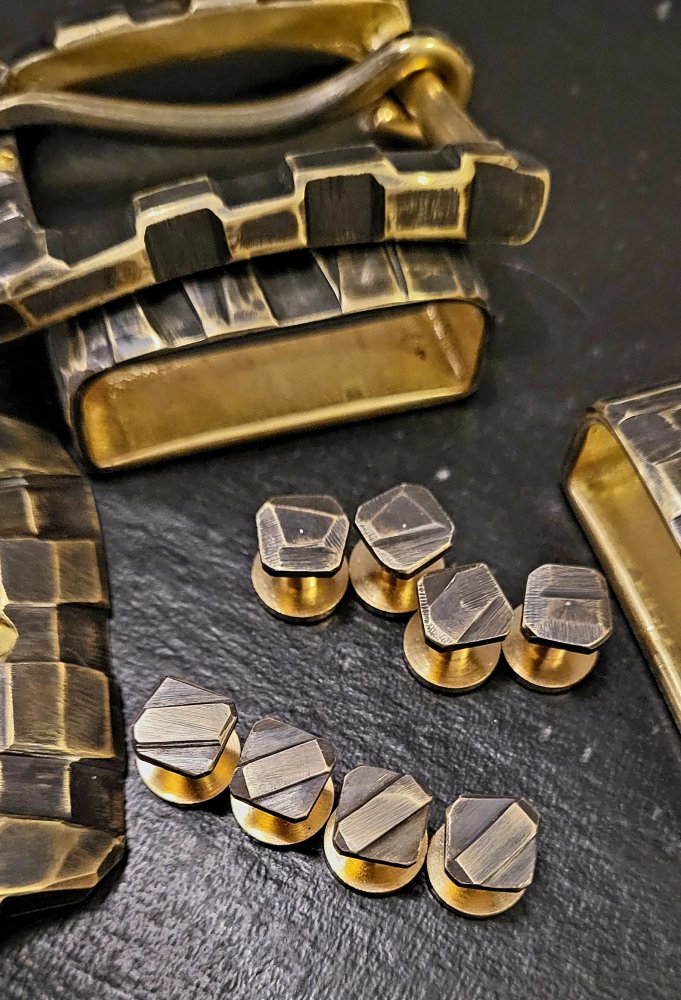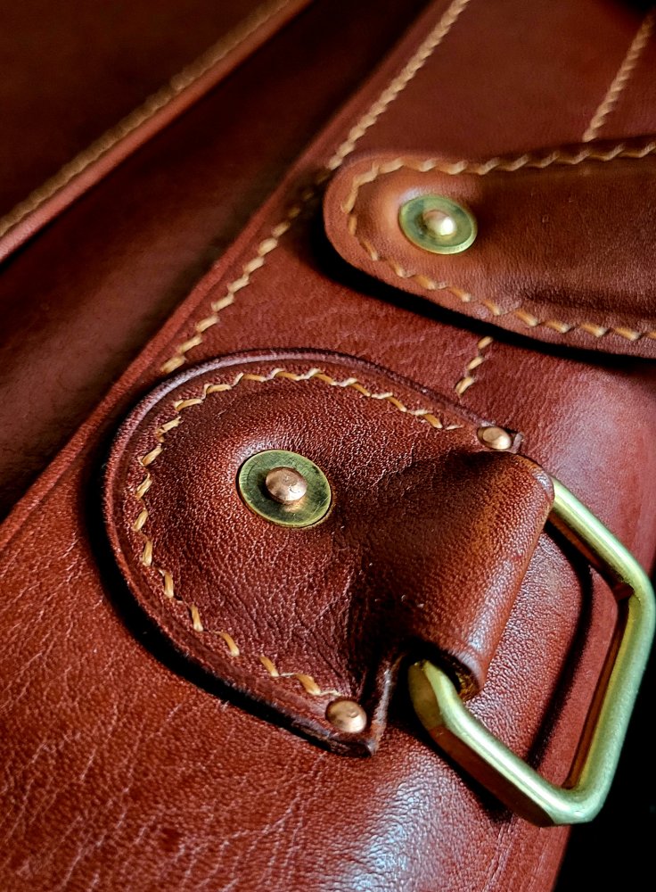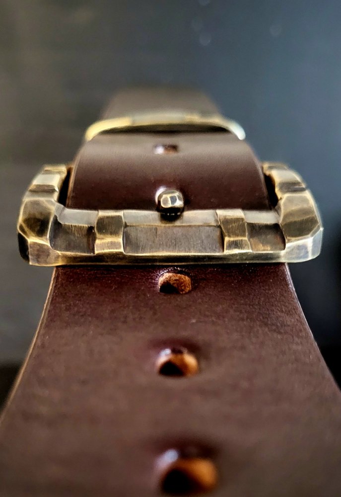Делал по правильному.. Начиная с бумажного макета, потом выкройки с просчетом всех отв. Для прошивки. Потом коррекция под кожу. Ремешки многослойные с внутренним усиливающим слоем. Все прошито руками, седельным швом. Ну и латунь с медными клепками меня зацепила. Делал долго, порой бросить нахрен хотелось. Но заставил себя. Вообщем я рад и счастлив. Даже "многобукв" написал...