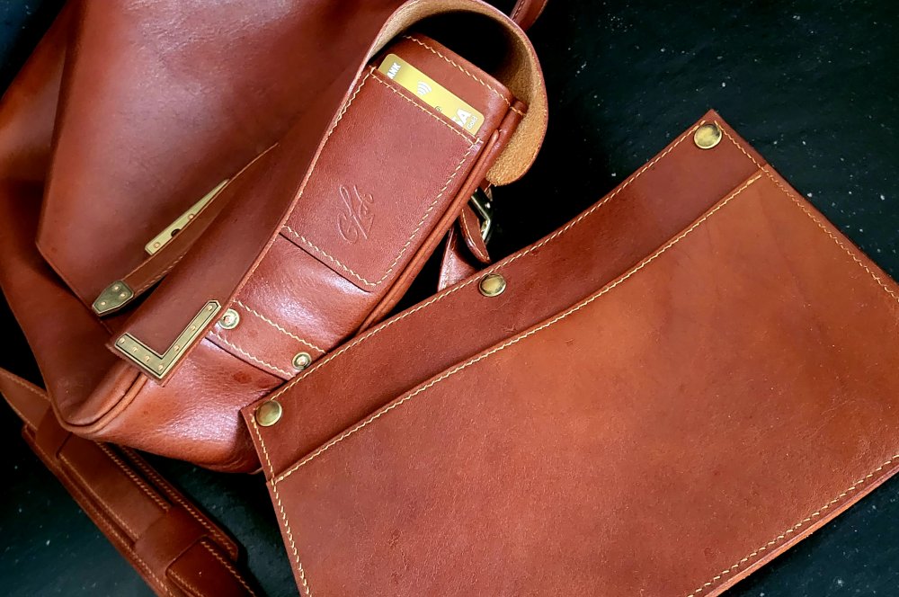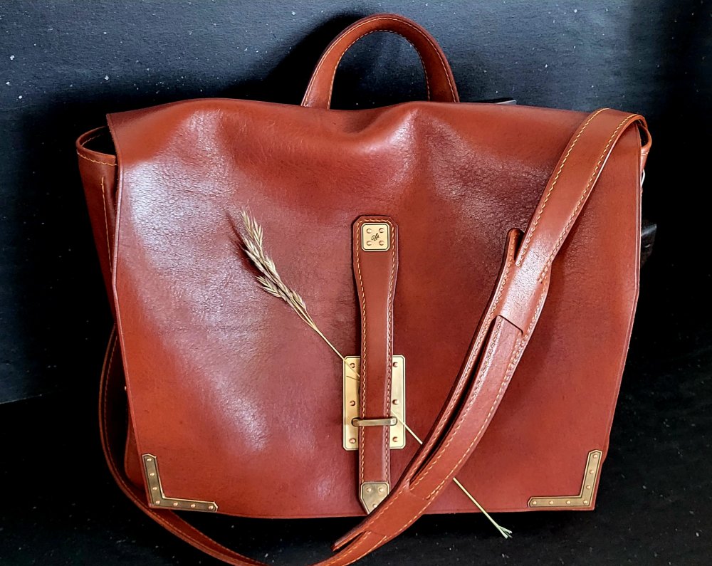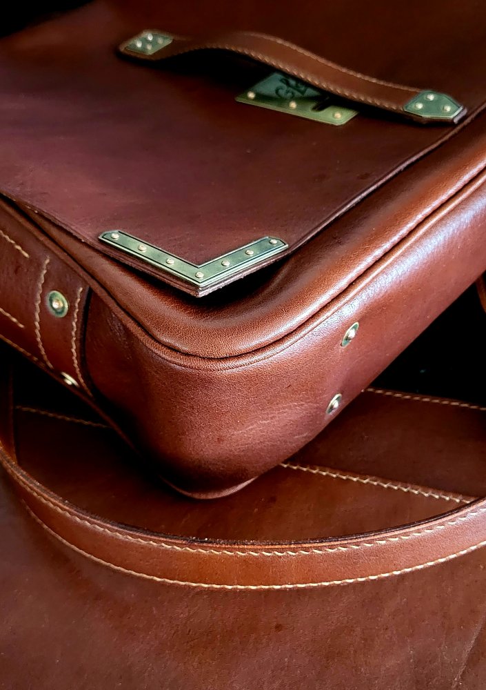 Делаю первую в жизни сумку. Для дочки Под формат А4, чтоб в универ ходить Делаю долго с перерывами между заказами на ремни. Много новых для меня элементов. Например ремешки и ручка с подиумом. Латунь пилю, клепки клепаю. Интересно....