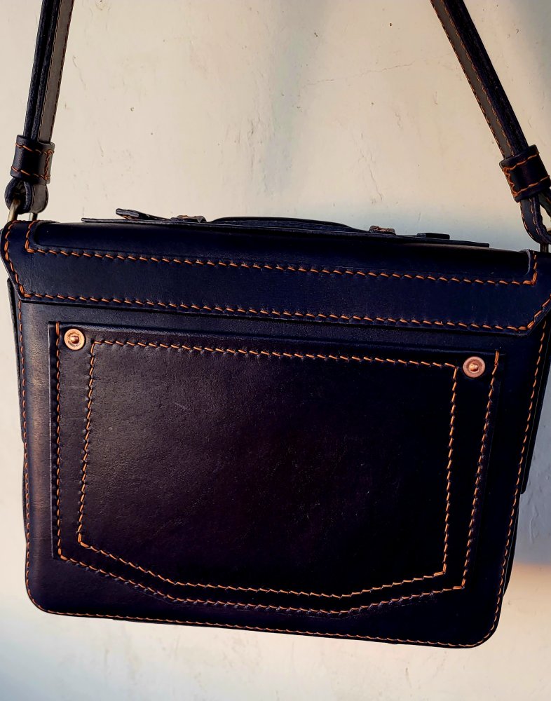 Сделал, наконец, жене сумку! Долгая была история. Купила она, лет много назад, себе сумочку в одной известной компании. Купила за дорого...наверное как Твинпауэр пж. Думаю, что по этому, сумочка ей очень нравилась и носила она ее всегда и везде. Одна беда...Сумка эта была сделана из дермантина. Или как сейчас говорят из экокожи Т.е. по цене Твина продали ей какую-то Наски или даже вообще низнаючто. Естественно, что на углах и ручке, появились люфты, ну всмысле протерлась ткань и краска стала отваливаться. Однако, ни один шов не лопнул, ничего не отвалилось, значит конструкция у нее хорошая. Надо было мне кожу подобрать.. А как ее подбирать, если я тут - а она там. Ни помять, ни потрогать. Да и цвет по монитору искажается. Отправил я дочку на выставку кожи в Питере с этим заданием... Она выбрала. Естественно, это оказалась Италия и недешевая. И кусочек по площади прям в обрез. Права на ошибку нет. Приехал ко мне этот рулон, разворачиваю я его и...мягко говоря офигел. Кирза с сапог- один в один.. Звоню дочке с вопросом, а она мне говорит Ничего ты папа не понимаешь, это современная тенденция в моде. Я сумочки из такой кожи в питерских дорогих магазинах у разных брендов видела. Ну ладно..подумал я. Бум делать из кирзы Она хоть и рисунка, и цвета такого, но отличнейшей выделки и с хорошим зашитным верхним слоем. К тому же, сквозного прокраса. Т.е. кожа для сумки на каждый день - самое то. Если где и зацарапает, то видно не будет. Это только кажется, что скопировать просто. Вроде и конструкция простая, однако.. в этой простоте - много сложностей. С первым вариантом накосячил... Не тот припуск взял, и сумка получилась другой формы Беда и попадалово. Но деваться некуда. Эту дочке отдал "для опытов" купил еще кожу. А они, продавцы, теперь ее не кусками, как на выставке, а целыми шкурами продавать стали. Попадос вдвойне Пока делал новую, зашла в гости знакомая. И тож такую захотела Ну я прям обрадовался, но у жены разрешение спросил. А то мол вдруг обидеться, что вторая такая будет. К удивлению - не возражала. Вообщем сделал две но с кнопками из разного метала. Жена уже 2 недели ходит, довольная. Сумка прям отличная..прям Стелла, не меньше хоть на кирзу похожа