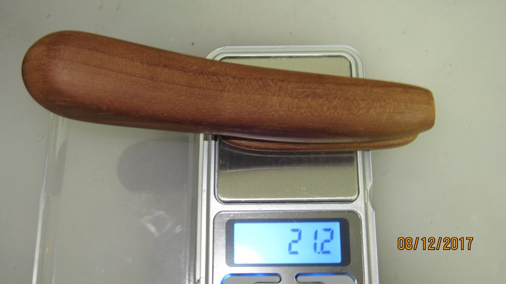 Не самый легкий. Все-таки береста материал довольно плотный. Я заметил ему, что можно над весом поработать, но тут основной вес идет на более массивную рукоять, баланс удобный для работы + удочка не для легких блесен делалась.