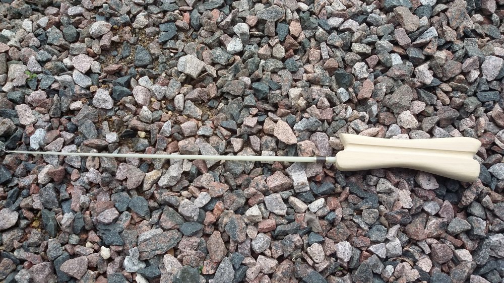 По мне так хлыст надо под углом вклеить...Леску мотать не удобно будет,держаться не за что...